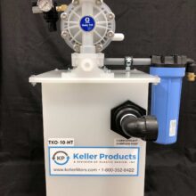 The TKO-10-HT patented tramp oil skimmer system is designed to continuously remove oil from aqueous parts washers. The system is usually elevated to a position above the cleaning tank. All TKO units employ a rugged 1/2″ air diaphragm pump.