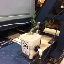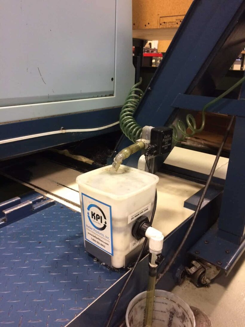 The MB 17-SK is a complete tramp oil skimming solution. The skimmer employs a silicone felt belt which works better at lifting oil, and is more durable than conventional urethane belts. The system also includes an oil collection container, which holds all of the skimmed oil while returning any coolant removed back to the CNC machine.
