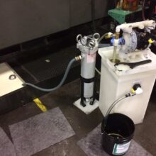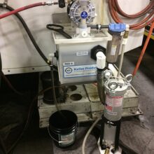 The rugged, lightweight aluminum coolant filter assembly includes the tripod mounting legs. A TKO tramp oil skimmer system combined with a BA-0475-TKO bag filter provides a complete coolant filtration solution for CNC machines.