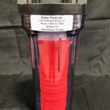 The 075A-2130 is a water filter assembly. It includes the 3/4″ port clear housing with a 100 micron washable disc filter installed. The housing is rated up to 125 psi. Keller’s proprietary stacked disc elements have been the cornerstone of the Keller filter line for the last 30 years. The stacked disc filters offer tremendous surface area in a compact package.